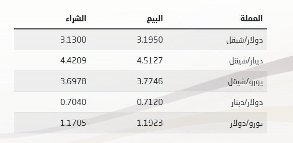 أسعار صرف العملات مقابل الشيكل