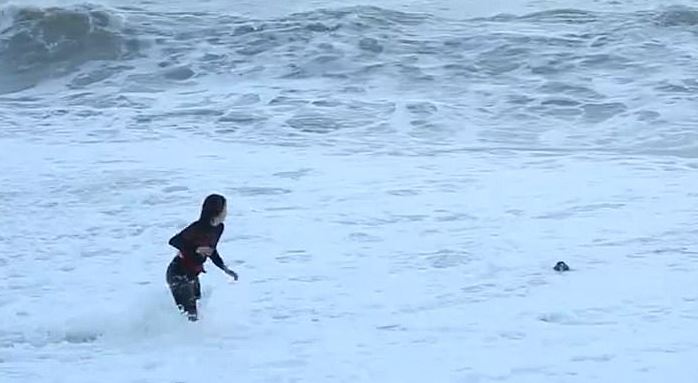 وتمكنت الشابة من الخروج حية من الأمواج القوية وانقاذ كلبها إلا أن المسؤولين في المنطقة قد استنكروا ما فعلته لأنها عرضت حياتها للخطر، طالبين من المواطنين الاتصال بفرق الإنقاذ عند مواجهة موقف مشابه.