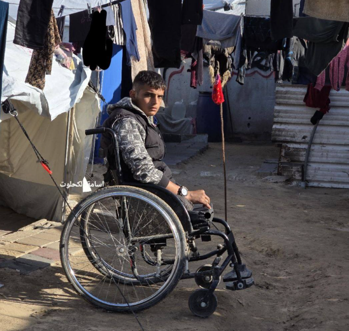 ملامح رائد تلخص مأساة الكثير من الشباب الذين سلبهم الاحتلال مستقبلهم وآمالهم وقتل أحلامهم، رائد الذي كان يجوب الأنحاء يحث الخطى بعزم ليأتي أهله بما يسد رمقهم ويدفي عظامهم من برد الشتاء القاسي تحت سقف الخيام، يجلس اليوم على كرسي متحرك في محيط المخيم، وقد بدت على وجهه آثار الألم والصمود في آن واحد، بينما يلتفت بقية أفراد أسرته حوله بانتظار ما قد يأتي من مساعدة تسهم في إنقاذ ما تبقى من حياة كريمة لهم.
