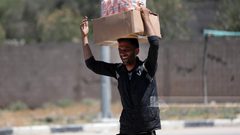 مواطنون يحصلون على بضع مساعدات من مركز للتوزيع بمنطقة محور نتساريم