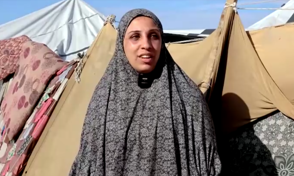 شفاع أبو حليمة قالت من أمام خيمتها في شمال غزة: "يكفينا أننا نعيش في خيام وفي فوضى بسبب المطر، ولا يشعر بنا أحد. ليس لدينا شيء، حتى الملابس غير متوفرة."