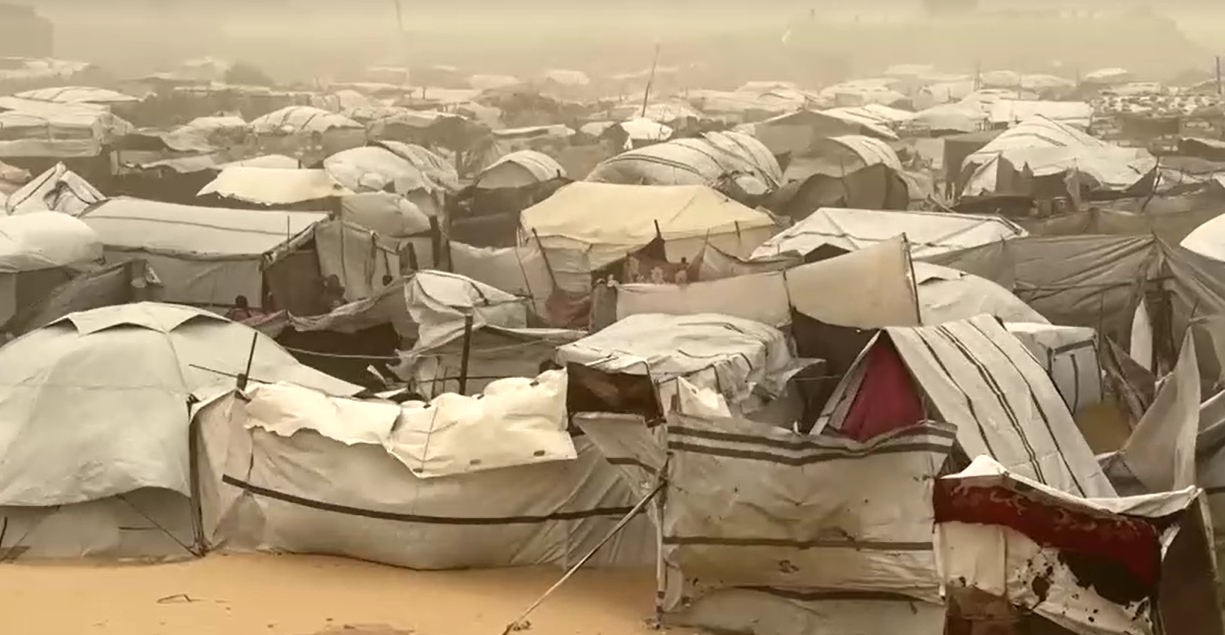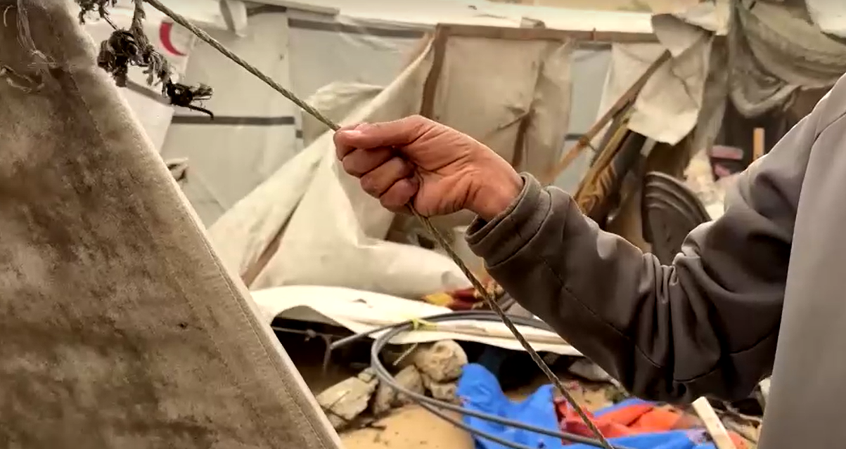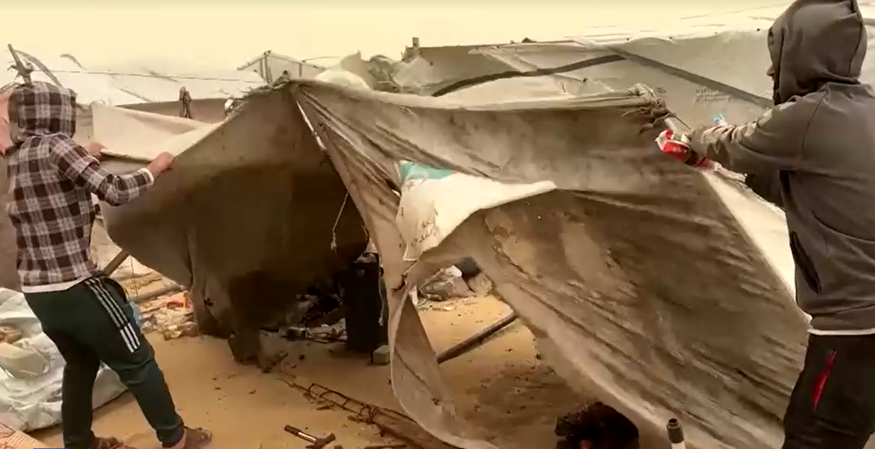 وقال محمد أبو حريب، أحد النازحين، لوكالة رويترز: "كلما جاءت موجة من الرياح، تسقط الخيام. حياتنا أصبحت بؤسًا لا يُطاق، الخيام تنهار والممتلكات تتضرر، والظروف اليومية صعبة جدًا". وأضاف أن "المصير بيد الله، لا نعرف كيف سننام أو نغتسل، فالحمامات انهارت والخيام تدمرت وكل حياتنا أصبحت في حالة خراب".