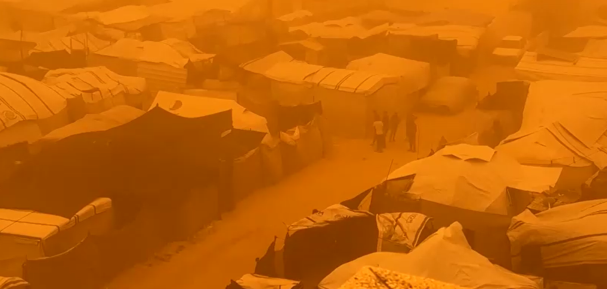 النجاح الإخباري - ضربت عاصفة ترابية، اليوم السبت مخيمات النازحين في مناطق خان يونس ومدينة غزة، مسببة دمارًا واسعًا في المساكن المؤقتة وإتلاف ممتلكات الأسر، فيما حاول الآلاف من الفلسطينيين تأمين خيامهم وسط الرياح القوية.