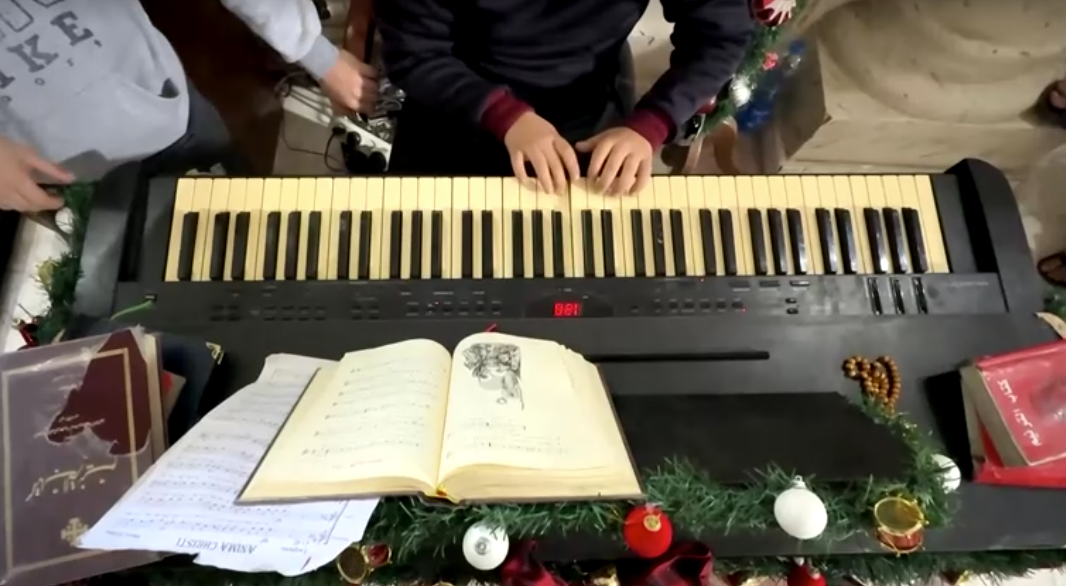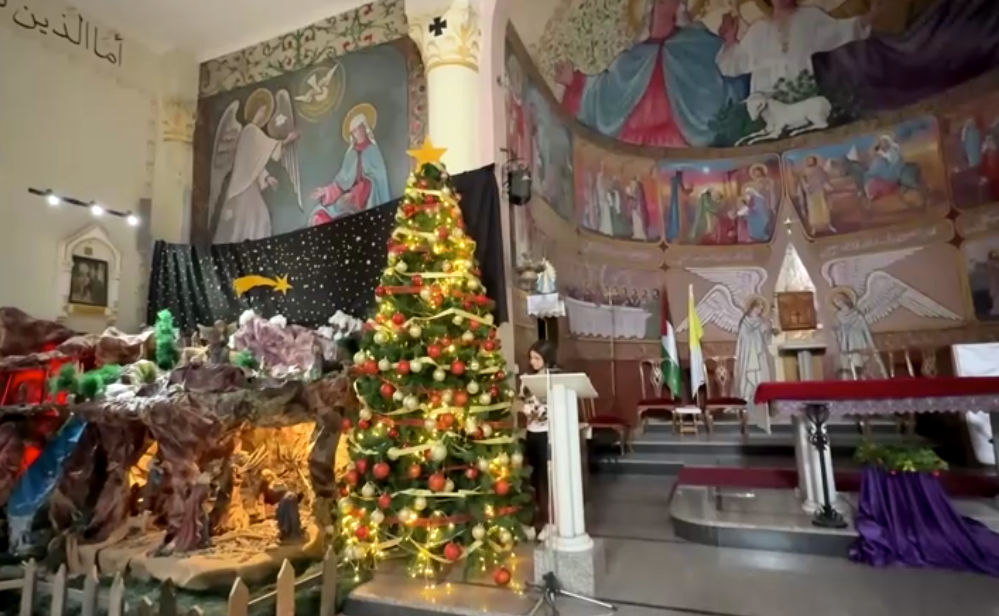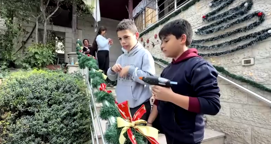 الأطفال أيضًا شاركوا في إضافة الزينة، وترتيب المذود، وتحضير زوايا ميلادية صغيرة، فيما كانت الموسيقى تتردّد داخل مبنى الكنيسة المتضرّر، لتمنح لحظة عابرة من الدفء amid the devastation.